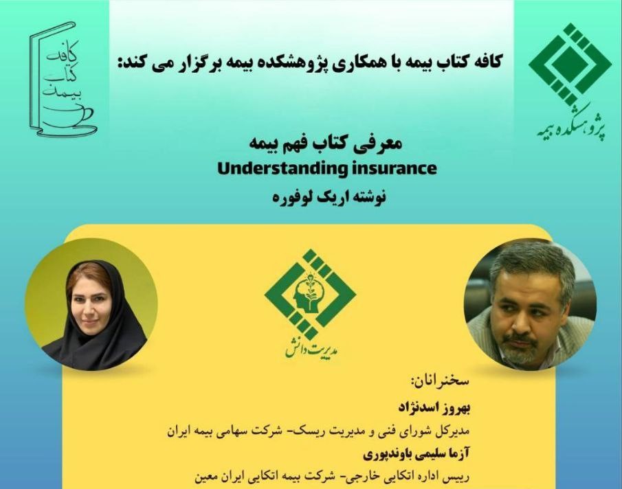 \r\nبه گزارش مراقب بیمه به نقل از روابط عمومی و امور بینالملل پژوهشکده بیمه، در این کافه کتاب آقای «بهروز اسدنژاد، مدیرکل شورای فنی و مدیریت ریسک شرکت سهامی بیمه ایران» و خانم «آزما سلیمی باوندپوری، رئیس اداره اتکایی خارجی شرکت بیمه اتکایی ایران معین» به بحث و تبادل نظر در خصوص «قیمتگذاری در بیمه و چالشهای آن»، «خطرات مربوط به ذخایر بیمهای»، «بیمههای زندگی و محصولات پساندازی»، «بررسی موشکافانه علل شکست یا موفقیت شرکتهای بزرگ بیمهای، « بررسی چالشهای فعلی و پیشبینی آینده صنعت بیمه» و «چالشهای دیجیتالی صنعت بیمه و اینشورتک» خواهند پرداخت.