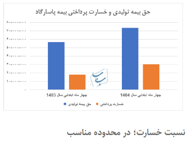 \r\nدر بازه چهارماهه نخست سال ۱۴۰۴ نیز مجموع حق بیمه تولیدی بیمه پاسارگاد به ۷۳,۴۶۹ میلیارد ریال رسیده که در مقایسه با رقم ۵۶,۳۶۶ میلیارد ریالی چهار ماه نخست ۱۴۰۳، رشد ۳۰ درصدی را نشان میدهد. این رشد در شرایط فعلی اقتصادی کشور، نشانهای از عملکرد باثبات و مدیریت هوشمندانه بازار هدف توسط این شرکت است.
