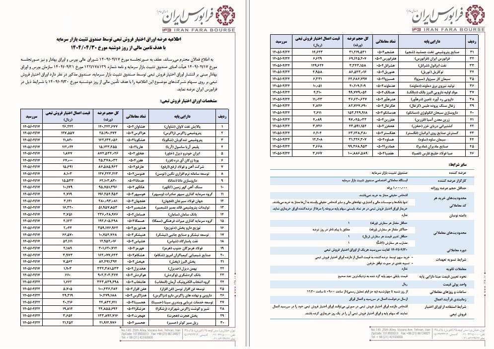 \r\n\r\nدر طرح جدید، سهام شرکتهای مطرحی چون پالایش نفت اصفهان، ملی مس ایران، مخابرات ایران، بیمه پاسارگاد، فولاد مبارکه و بانک پارسیان مورد حمایت قرار گرفتهاند و جزئیات مربوط به قیمت اعمال اختیار فروش تبعی، دوره معاملاتی و نماد هر شرکت به طور شفاف در اطلاعیه فرابورس درج شده است. کارگزاری صندوق تثبیت بازار سرمایه نیز به عنوان متعهد عرضه و پذیرش ایفای تعهدات تعیین شده است.