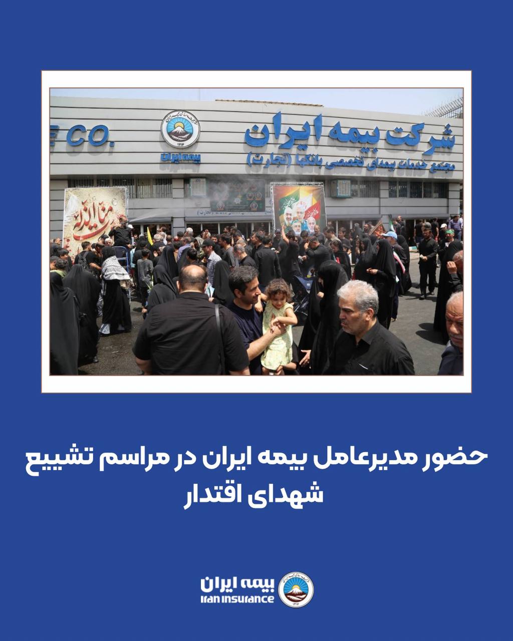 \r\nبه گزارش مراقب بیمه به نقل از روابط عمومی بیمه ایران، مدیرعامل و جمعی از اعضای هیئت مدیره، معاونین، مدیران کل و کارکنان بیمه ایران از اولین لحظات آغاز مراسم تشییع پیکر فرماندهان نظامی و دانشمندان کشورمان که در پی تجاوز اخیر رژیم صهیونیستی به کشورمان به شهادت رسیدند، همراه با اقشار مختلف مردم برای ادای دین به این شهدا در مراسم تشییع پیکر آنها حاضر شدند.
