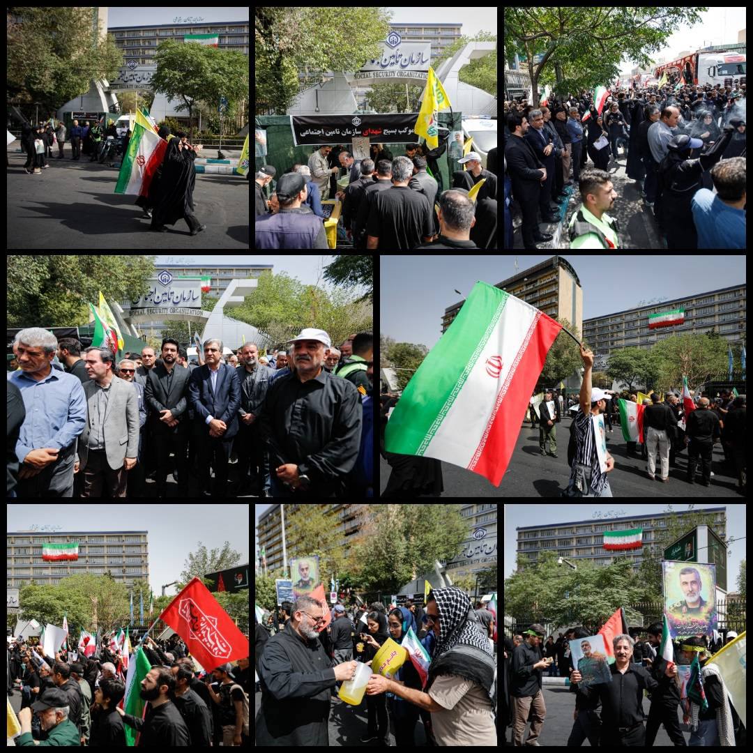 \r\nمدیرعامل و جمعی از مدیران و کارکنان سازمان تامین اجتماعی، همراه با مردم در مراسم تشییع قهرمانان ملی و شهدای اقتدار ایران در مقابل ساختمان مرکزی سازمان در خیابان آزادی تهران حضور یافتند.
