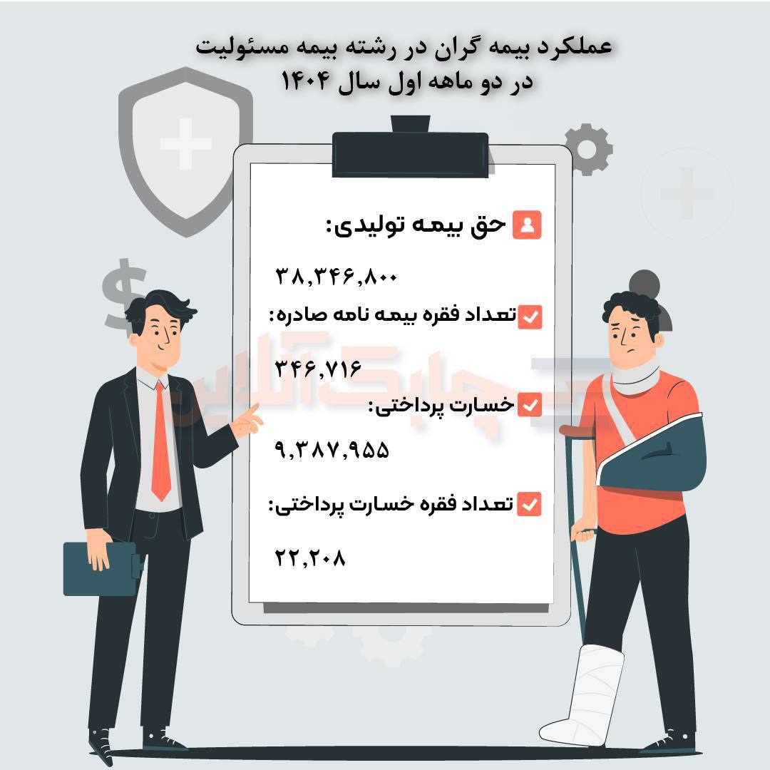 \r\nحق بیمه صادره بیمه گران در رشته بیمه مسئولیت در دو ماهه اول سال ۱۴٠۴ رقمی معادل ۳هزار ۸۳۴ میلیارد تومان بود.