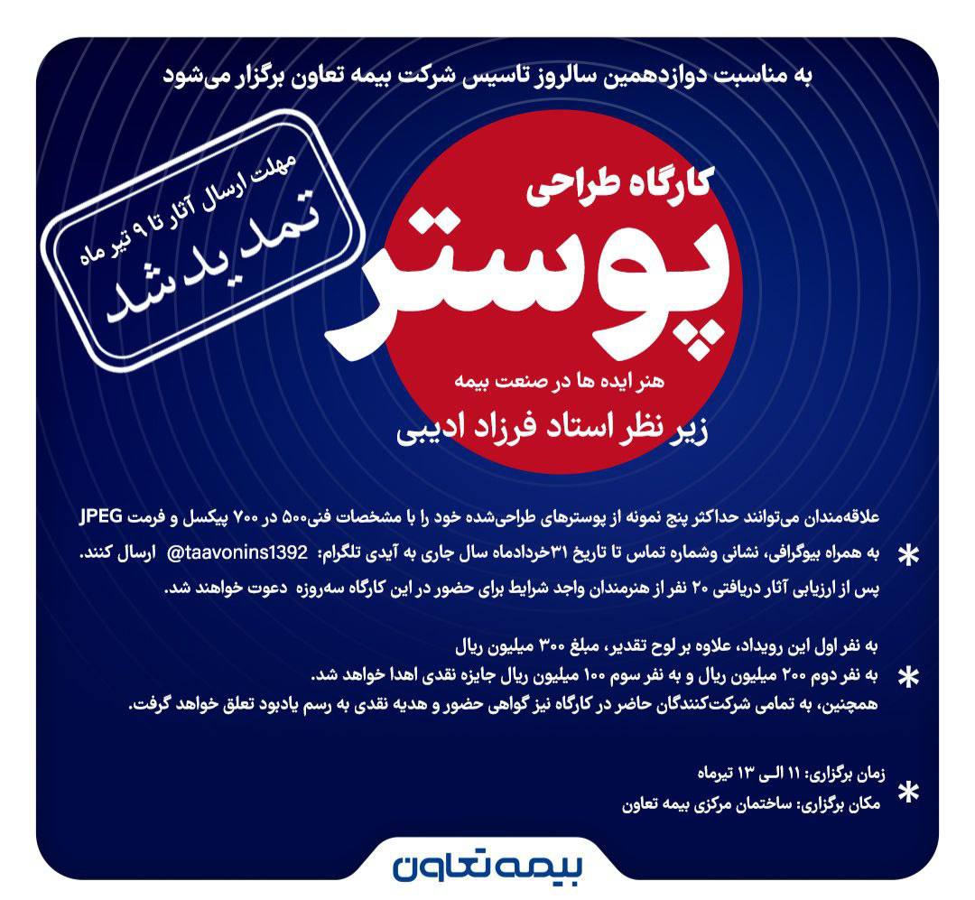 \r\nهمچنین، مهلت ارسال آثار شرکتکنندگان تا تاریخ ۹ تیرماه تمدید میشود.