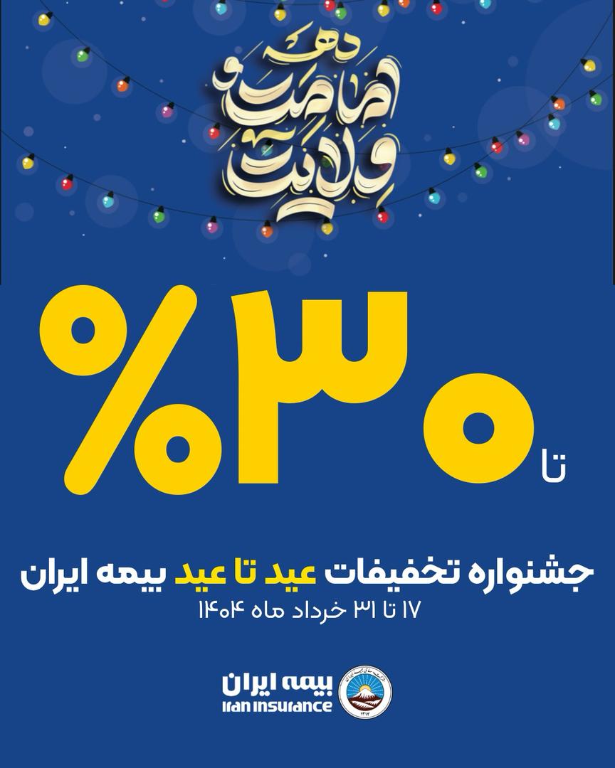 \r\nبه گزارش مراقب بیمه به نقل از روابط عمومی بیمه ایران، در این جشنواره که از تاریخ ۱۷ خرداد آغاز شده و تا پایان ماه جاری ادامه دارد؛ تخفیفهای متنوع و قابلتوجهی در رشتههای مختلف بیمهای برای عموم متقاضیان در نظر گرفته شده است.
