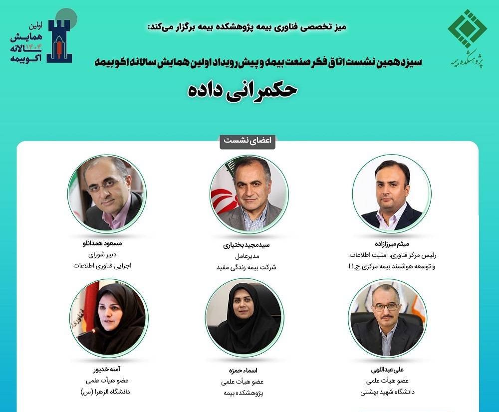 \r\nعکسی فناوری اطلاعات»، «میثم میرزازاده، رییس مرکز فناوری، امنیت اطلاعات و توسعه هوشمند بیمه مرکزی ج.ا. ایران»، «علی عبداللهی، عضو هیات علمی دانشگاه شهید بهشتی» و خانمها «آمنه خدیور، عضو هیات علمی دانشگاه الزهرا» و «اسماء حمزه، عضو هیات علمی پژوهشکده بیمه» به بحت و بررسی در این خصوص پرداختند.