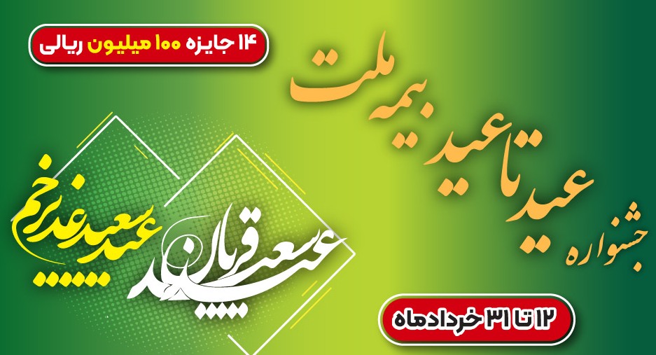 \r\nبه گزارش مراقب بیمه به نقل از روابط عمومی بیمه ملت، این جشنواره به مناسبت فرا رسیدن عید سعید قربان و عید غدیر خم، از تاریخ ۱۲ تا ۳۱ خردادماه در رشتههای بیمه آتشسوزی (صنعتی، مسکونی و غیرصنعتی)، بیمه عمر زمانی انفرادی و مانده بدهکار، بیمههای حوادث انفرادی و خانواده، بیمه شخص ثالث خودرو، بیمه بدنه خودرو و همچنین بیمه مسئولیت دوچرخه برگزار میشود.
