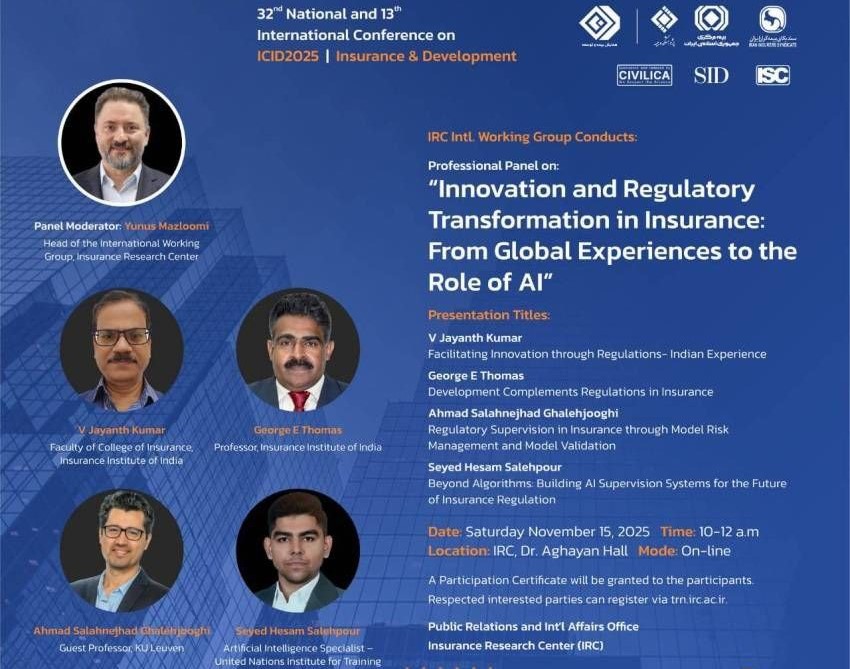 \r\n1- پنل تخصصی با عنوان «نوآوری و تحول مقرراتگذاری در صنعت بیمه» روز شنبه 24 آبان توسط کارگروه بینالملل پژوهشکده بیمه برگزار میشود که به بررسی تجربه کشورها در تسهیل نوآوری و نقش هوش مصنوعی در طراحی سامانههای نظارتی قابل اعتماد اختصاص دارد.