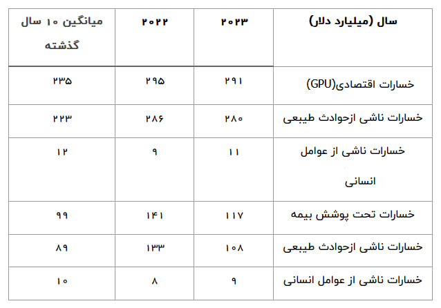 \r\nخسارتهای اقتصادی و تحت پوشش بیمه ناشی از حوادث فاجعهآمیز طبیعی در سال ۲۰۲۳