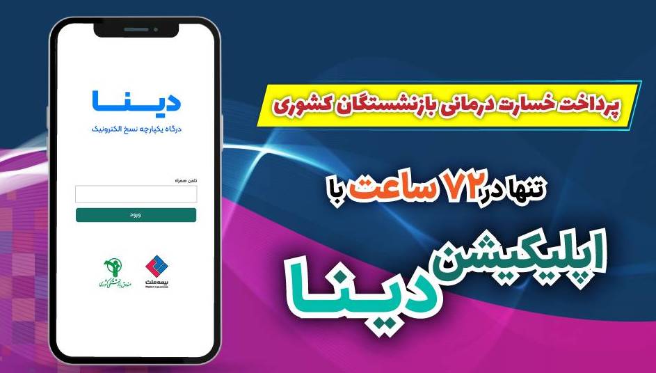 \r\nبه گزارش مراقب بیمه به نقل از روابط عمومی بیمه ملت، با استفاده از اپلیکیشن دینا، بازنشستگان گرانقدر میتوانند به صورت غیرحضوری و در هر زمان و مکانی، هزینههای درمانی خود را ثبت کرده و مدارک مورد نیاز را بارگذاری نمایند. این فرآیند به قدری ساده و سریع است که دیگر نیازی به مراجعه حضوری به دفاتر بیمه ملت و صرف زمان بهصورت فیزیکی نیست.