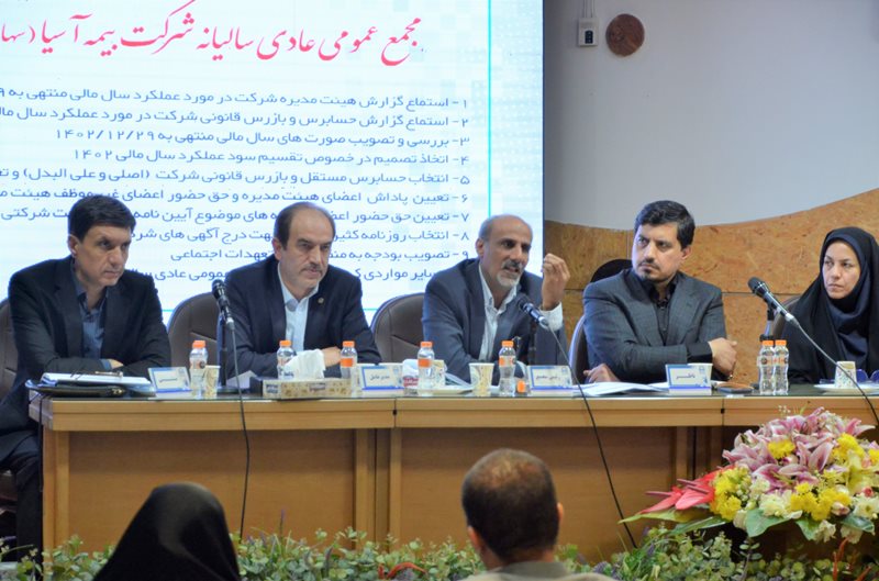 \r\nبنا بر این گزارش، محمدرضا عربی مزرعه شاهی رییس هیات مدیره و رییس مجمع عمومی بیمه آسیا در این جلسه از تلاش کلیه اعضای هیات مدیره، معاونین مدیرعامل، مدیران، کارکنان و شبکه فروش بیمه آسیا بابت عملیات موفقیت آمیز این شرکت در سال 1402 قدردانی و سپاسگزاری کرد.