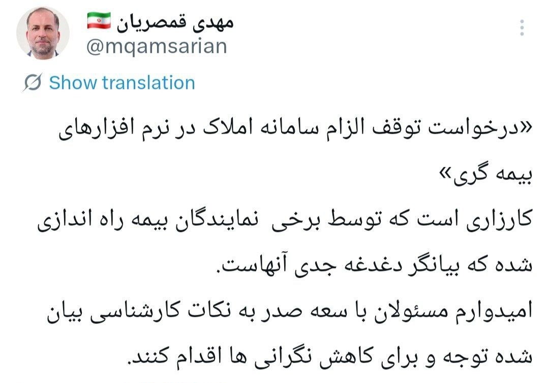 \r\n", "is_title": false, "is_link": false, "news": 6477 } ], "type": "news", "created_at": "2025-10-27T07:50:15.735531", "news_type": "news", "is_banner": false, "is_chief": false, "is_special": false, "is_insurance": false, "is_person": false, "view_number": 7, "is_publish": true, "publish_at": "2025-10-27", "creator": "admin1", "writer": 2 }, { "id": 6476, "news_detail": [ { "id": 8730, "cover": "https://api.moraghebbime.com/media/photos/news/cover/photo_2025-10-27_11-28-27.jpg", "created_at": "2025-10-27T07:44:32.982933", "publish_at": "2025-10-27", "header": "ضرورت کاهش نگرانی ها درباره الزام بیمهها برای اتصال به سامانه املاک و اسکان", "sub_header": "مدیرصندوق تامین خواستار شد؛", "person_name": null, "person_position": null, "homepage_description_for_chief": null, "brief_description": "", "news": 6476, "insurance_type": null } ], "ticket_num": 0, "writer_name": "مراقب بیمه", "writer_detail": { "id": 2, "image_file": "https://api.moraghebbime.com/media/photos/writer/0fe5c17b-78fe-45c6-b925-7d5d5ca2e275.jpeg", "created_at": "2023-06-02T08:13:06.223330", "name": "مراقب بیمه", "description": "null", "position": "رسانه تخصصی صنعت بیمه" }, "news_detail_multi": [], "news_tag_file": [], "news_image_file": [], "news_paragraph_file": [ { "id": 10528, "image_file": "EMPTY", "created_at": "2025-10-27T07:44:32.992877", "text": "\r\n\r\n\r\nمراقب بیمه : مهدی قمصریان مدیر صندوق تامین خسارتهای بدنی در شبکه ایکس نوشت: \"درخواست توقف الزام سامانه املاک در نرم افزارهای بیمهگری\"، کارزاری است که توسط برخی نمایندگان بیمه راهاندازی شده که بیانگر دغدغه جدی آنهاست. امیدوارم که مسئولان با سعه صدر به نکات کارشناسی بیان شده توجه و برای کاهش نگرانی ها اقدام کنند.