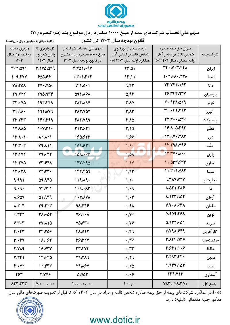 \r\nبر این اساس، رتبه اعتباری شرکتهای بیمه عمومی از طریق ارزیابی عوامل کمی و کیفی تعیین میشود و این رتبهبندی از طریق ارزیابی پنج شاخص توانگری مالی بیمهگری، میزان حق بیمه تولیدی شرکت بیمه، تعداد بیمهنامه صادره شرکت بیمه، میزان خسارت پرداختی شرکت بیمه و رضایت مشتریان CRM با توجه به ظرفیت شرکت بیمه عملیاتی خواهد شد.