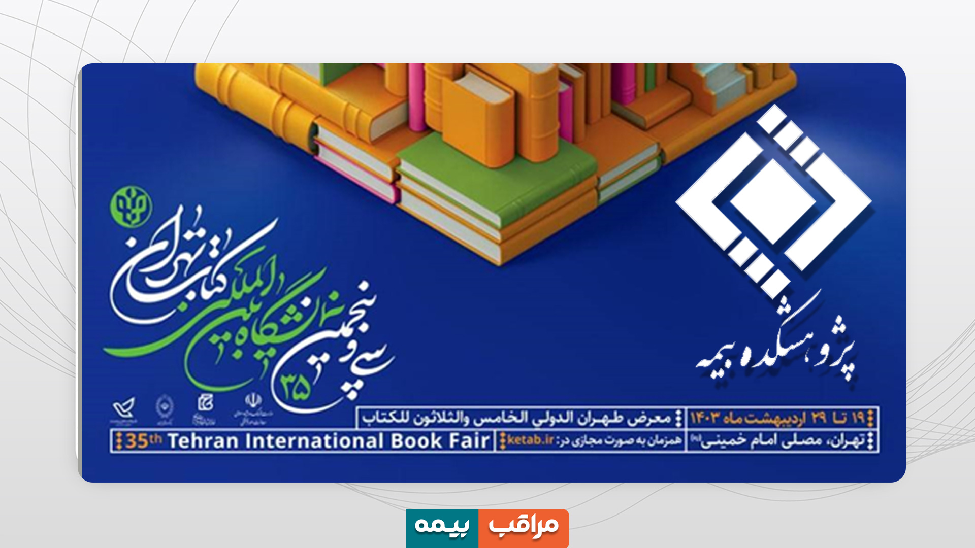 \r\nبه گزارش مراقب بیمه و به نقل از روابط عمومی و امور بینالملل پژوهشکده بیمه، انتشارات پژوهشکده بیمه با حضور در سیوپنجمین نمایشگاه بینالمللی کتاب تهران که از 19 تا 29 اردیبهشتماه 1403 در محل مصلای امام خمینی(ره) تهران برگزار میگردد، 130 عنوان کتاب تخصصی در حوزه بیمه و تکافل را در معرض دید مخاطبان قرار خواهد داد.