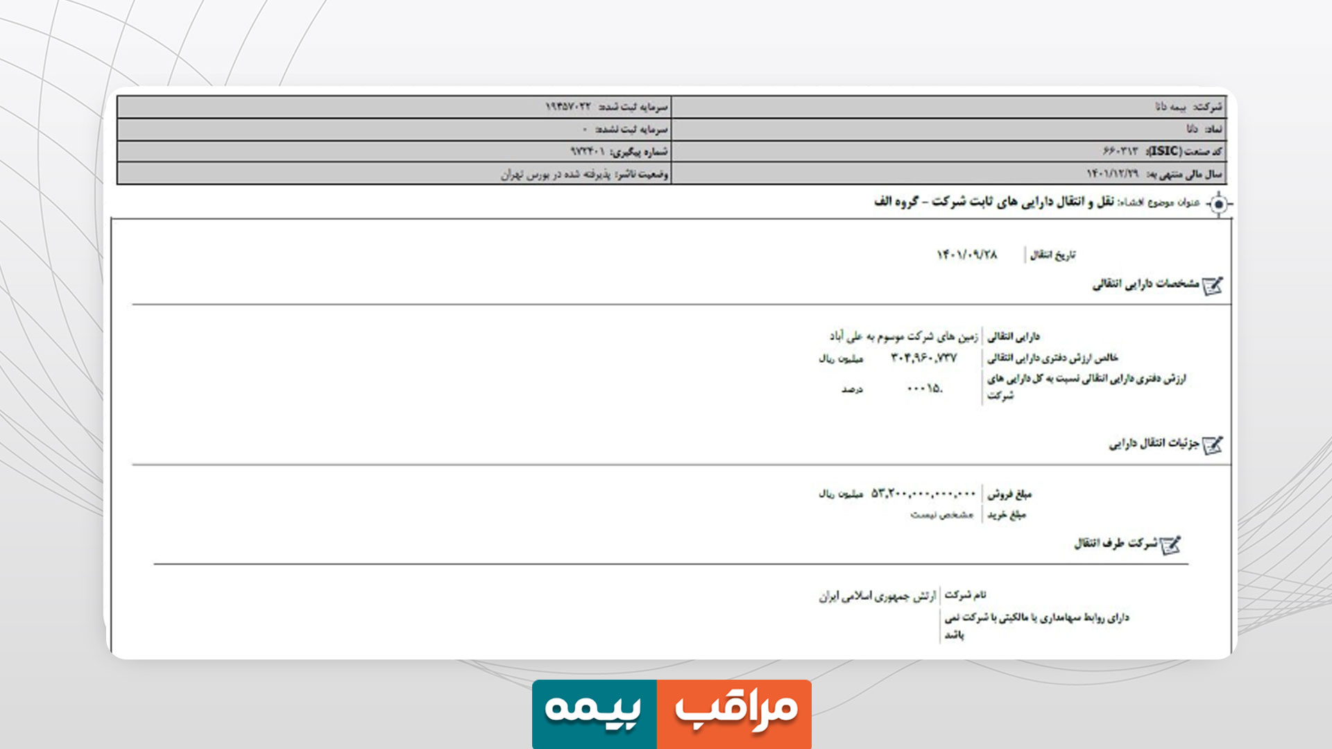 \r\nنکته جالب تر اینکه هر وقت این خبر منتشر شد، قیمت سهام این شرکت جهش کرد که نشان از اهمیت این اقدام برای شرکت بیمه دانا دارد. در بهمن 1402 که مدیر عامل شرکت سخن از دریافت احتمالی این ملک گفت سهام این شرکت روزانه نزدیک به پنج درصد رشد کرد.