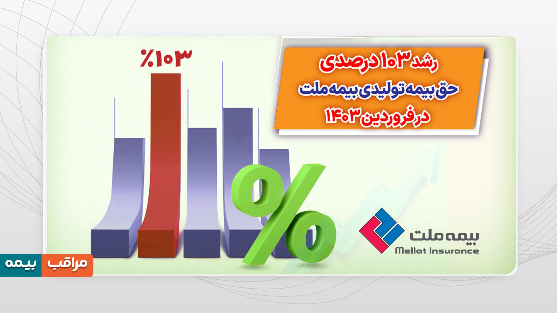 \r\nبه گزارش مراقب بیمه و به نقل از روابط عمومی بیمه ملت، عملکرد یک ماهه منتهی به ۳۱ فروردین ۱۴۰۳ این شرکت حکایت از تولید مبلغ ۲۸۱۷ میلیارد و ۶۵۹ میلیون ریال حق بیمه دارد که این رقم نسبت به دوره مشابه سال گذشته افزایش بیش از ۱۰۳ درصدی را به ثبت رسانده است.