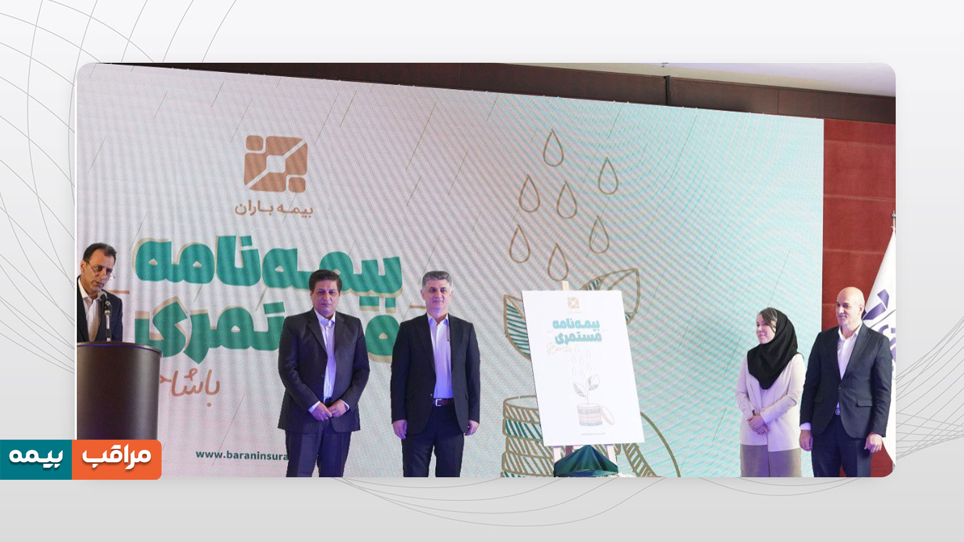 \r\n\r\nمراقب بیمه : بیمه مستمری باران با شاخص تورم با حضور اعضای هیاتمدیره، مدیرعامل، معاونان و مدیران بیمه باران، معاون مدیرکل نظارت بر بیمههای اشخاص و مسئولیت بیمه مرکزی و همچنین مدیران عامل سه شرکت بیمهای خاورمیانه، کاریزما و آگاه رونمایی شد.