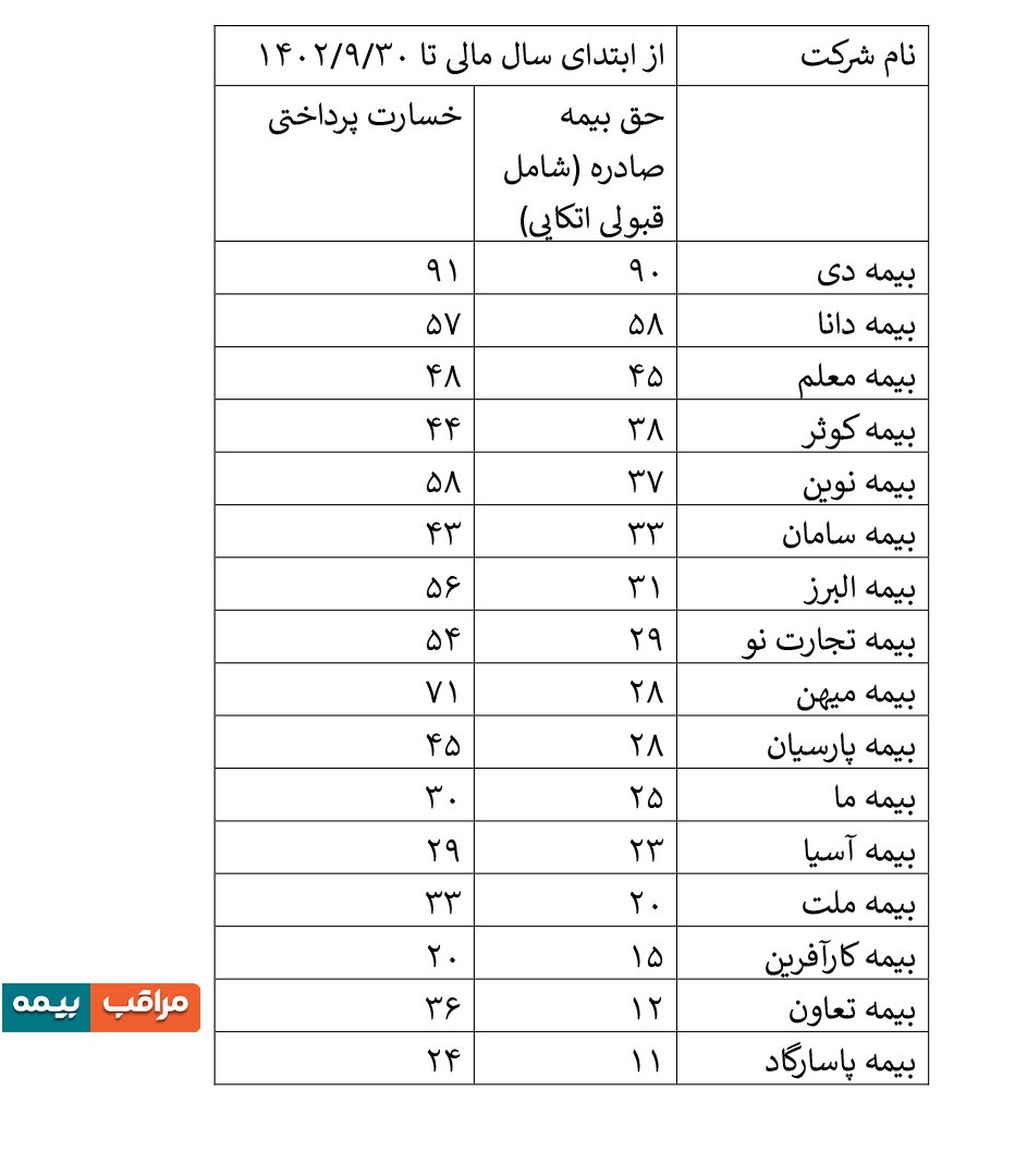 \r\nاین در حالی است که ضریب خسارت سال ۱۴۰۰ حدود ۱۱۲ درصد، سال ۱۴۰۱، ۷۹ درصد و ۱۰ ماهه سال ۱۴۰۲ نیز ۷۶ درصد گزارش شده که حاکی از کاهش ۳۲ درصدی ضریب خسارت نسبت به سال ۱۴۰۰ است.