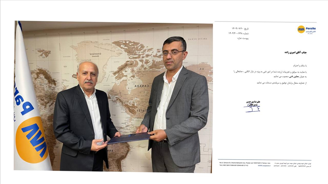 \r\nمدیرعامل بیمه اتکایی آوای پارس در این حکم، برای ایشان آرزوی توفیق و سربلندی در انجام مسئولیتهای جدید کرده است.