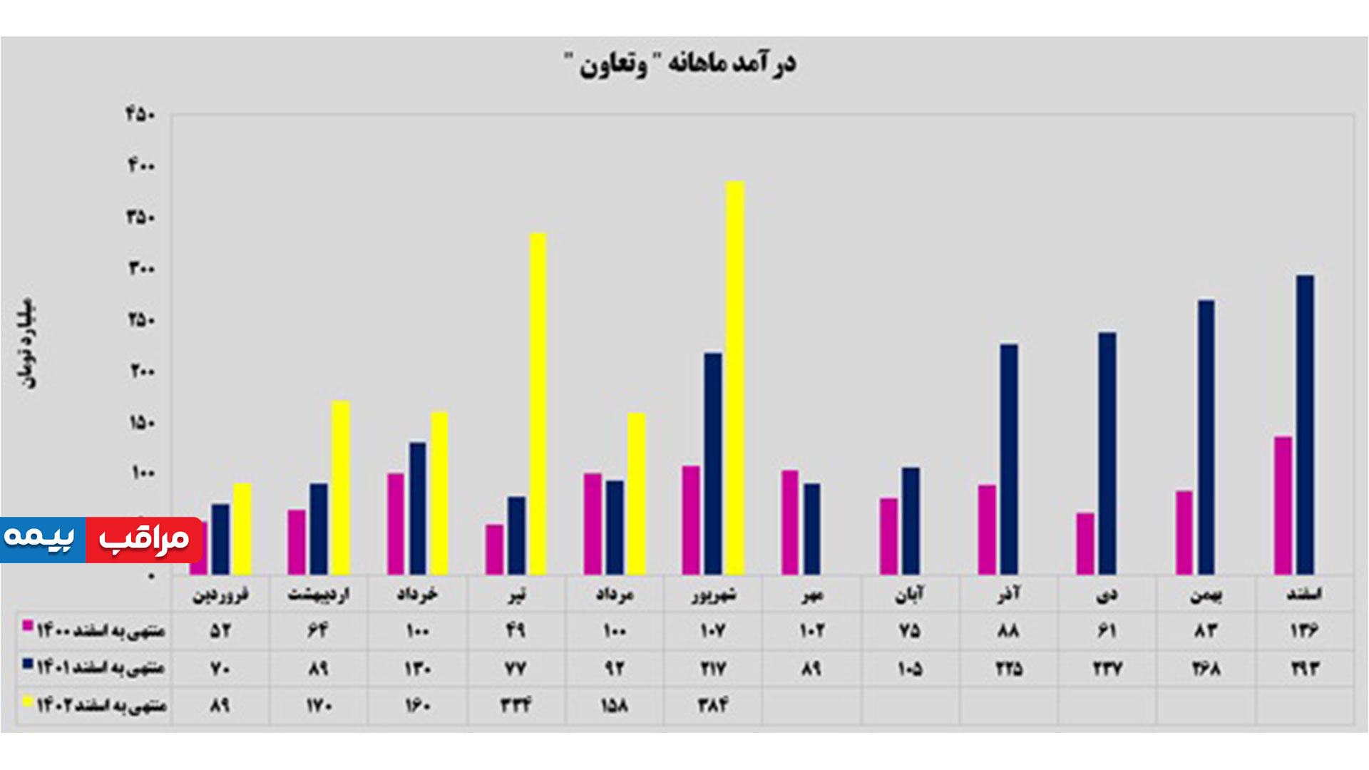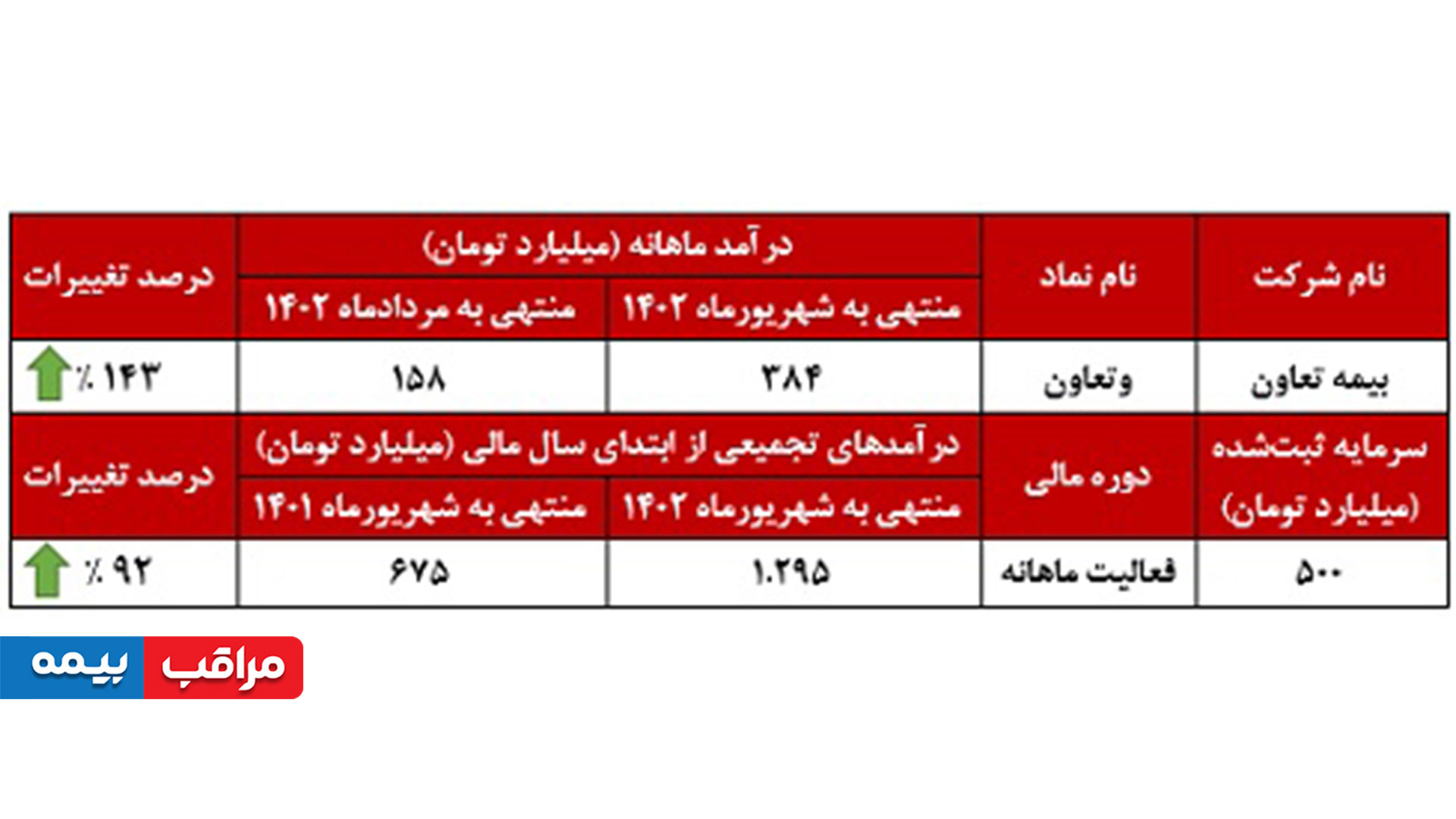 \r\nبه گزارش روابط عمومی بیمه تعاون، شرکت بیمه تعاون با سرمایه ثبتشده ۵۰۰ میلیارد تومانی و ارزش بازار ۸۹۳ میلیارد تومانی، در گزارش فعالیت ماهانه منتهی به شهریورماه سال جاری که در سامانه کدال منتشر کرد توانست رکورد بینظیری ثبت کند.