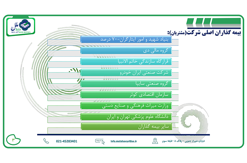 \r\n", "is_title": false, "is_link": false, "news": 227 }, { "id": 1148, "image_file": "https://api.moraghebbime.com/media/photos/news/2.jpg", "created_at": "2023-06-24T11:08:24.495278", "text": null, "is_title": false, "is_link": false, "news": 227 }, { "id": 1149, "image_file": "EMPTY", "created_at": "2023-06-24T11:08:24.499719", "text": "کارگزاری ملل پویا در این گزارش تاکید دارد که بیمهگزاران اصلی شرکت بیمه دی را به ترتیب بنیاد شهید و امور ایثارگران با 70 درصد، گروه مالی دی، قرارگاه سازندگی خاتمالانبیا و ... تشکیل میدهند.