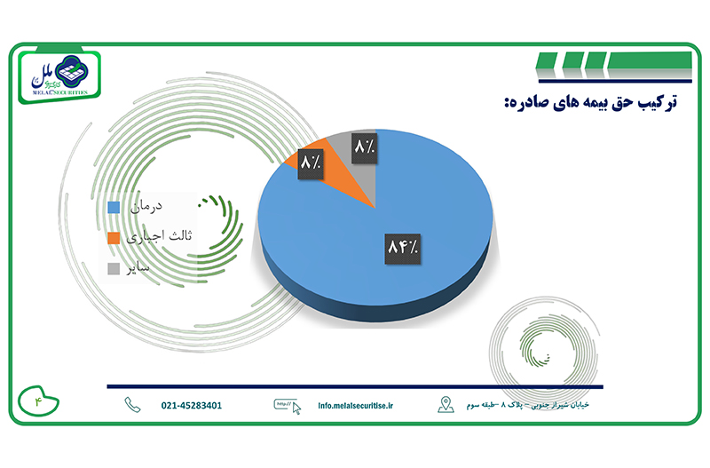 \r\n", "is_title": false, "is_link": false, "news": 227 }, { "id": 1150, "image_file": "https://api.moraghebbime.com/media/photos/news/3.jpg", "created_at": "2023-06-24T11:08:24.502437", "text": null, "is_title": false, "is_link": false, "news": 227 }, { "id": 1151, "image_file": "EMPTY", "created_at": "2023-06-24T11:08:24.505887", "text": "در ترکیب حق بیمههای صادره نیز بیمه درمان با سهم چشمگیر 84 درصد در صدر لیست قرار دارد و مابقی سهمها شامل 8 درصد بیمه ثالث اجباری و 8 درصد دیگر سایر بیمههاست.